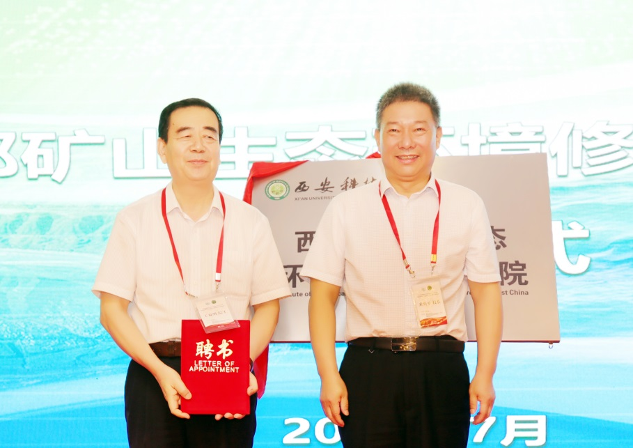 为进一步聚焦黄河流域高质量发展,加强对西部矿区长期生态环境演替监测和生态修复技术研发,加大绿色开采地质环境综合治理技术难题,充分发挥ac米兰官网中文网站在西部能源聚集地的地域、学科、科研等方面的优势,为西部矿区生态环境保护提供技术支撑和研发平台,该校成立了“西部矿山生态环境修复研究院”。中国工程院院士王双明,中国煤炭学会理事长刘峰,陕西省科技厅二级巡视员、省外专局副局长樊瑛华,ac米兰官网中文网站校长来兴平共同为研究院揭牌,并为研究院学术委员会主任彭苏萍院士、名誉院长王双明院士、院长毕银丽教授颁发聘书。