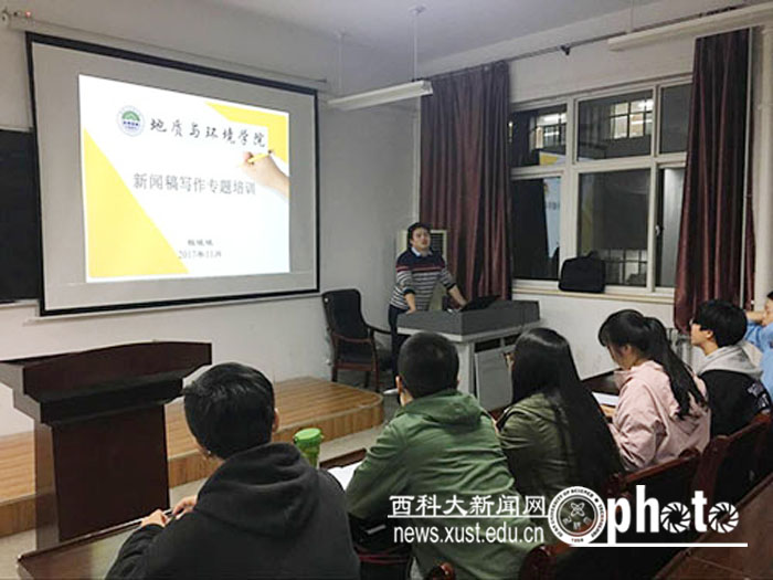 11月1日,地环学院辅导员桓斌斌在临潼校区骊山校园为学生进行了新闻稿写作专题培训。学院学生会新闻部、资助委员会企宣部共计30余人参加了此次培训。