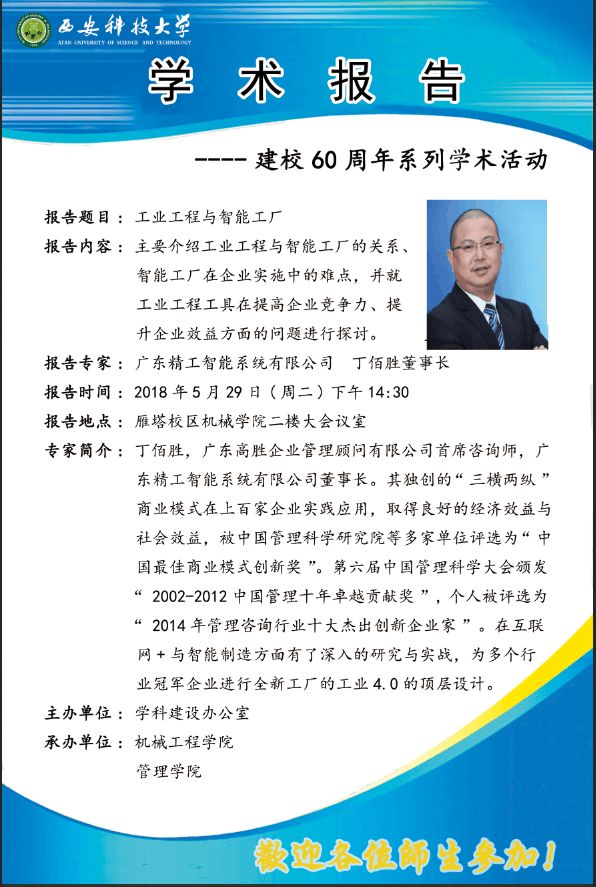 【学术报告预告】工业工程与智能工厂