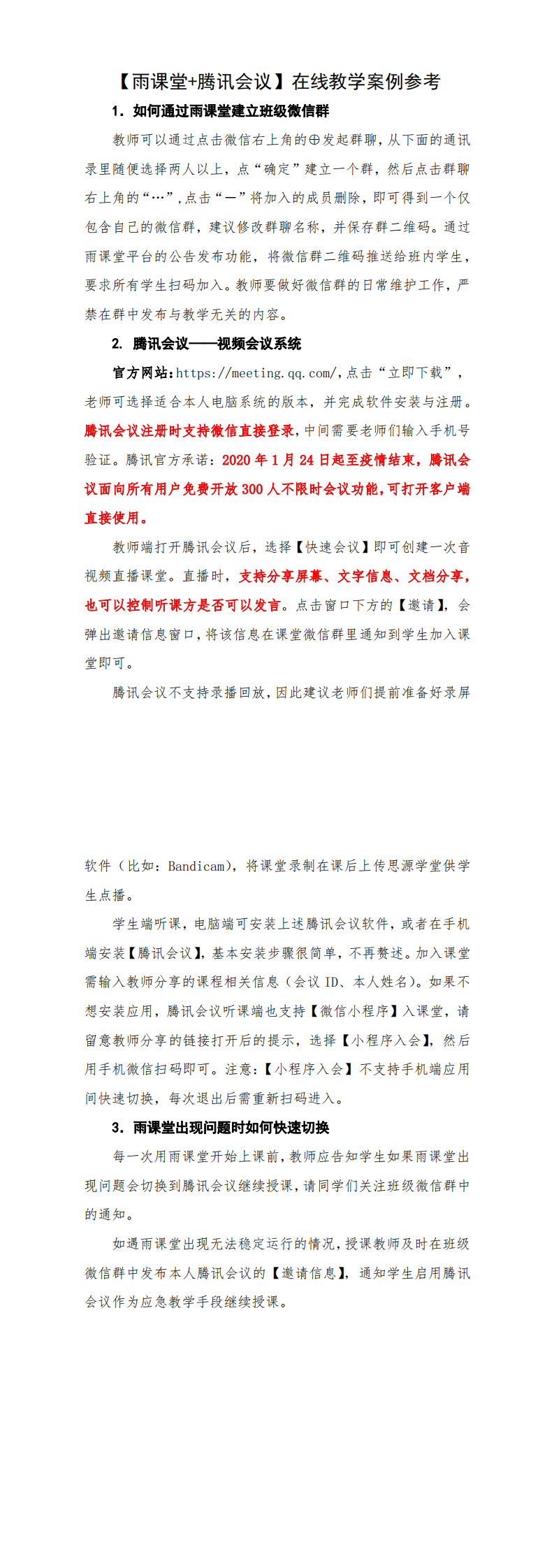 雨课堂+腾讯会议在线教学预案参考方案